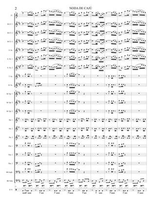 Le document semble contenir une partition musicale avec des indications de instruments et des notes. Il inclut une variété d'instruments à vent et de percussions, suggérant une composition pour un ensemble musical. Les annotations et symboles présents sont caractéristiques des notations musicales.