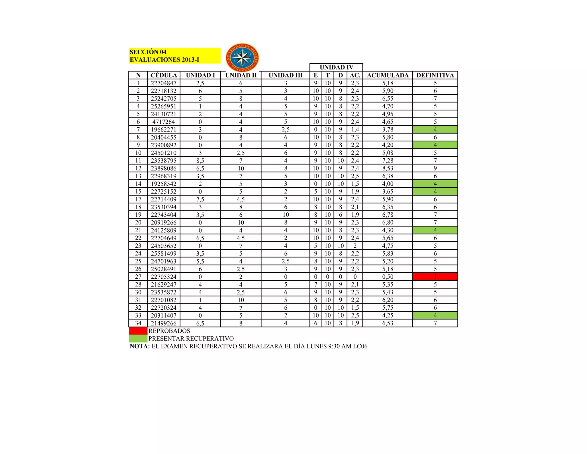 Le document présente des évaluations académiques pour une année spécifique, avec des notes détaillées et des identifiants d'étudiants. Il mentionne également un examen de reprise programmé pour une date et une heure précises. Enfin, le document inclut des résultats finaux pour chaque étudiant, offrant un aperçu des performances globales.
