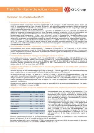 Wafa Assurance a enregistré un résultat net de 322,9 MDH en hausse de 42,2% par rapport à 2008, avec des primes brutes en augmentation de 14,4%. La compagnie vise à renforcer sa position sur le marché de la bancassurance tout en profitant des synergies avec Attijariwafa Bank, malgré des défis liés à l'activité de placement. Les résultats sont soutenus par des plus-values exceptionnelles, mais la dépendance aux revenus financiers souligne une fragilité à long terme.