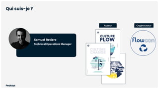 Le document présente les activités et les défis de Peaksys, une filiale de Cdiscount, en tant que leader français du e-commerce, avec des chiffres clés tels que 20 millions de visiteurs uniques par mois et un volume de 1 milliard de recherches par an. Il aborde également les difficultés rencontrées dans la gestion de projets, notamment les priorités instables et la saturation des équipes, tout en proposant une approche d'organisation axée sur les équipes pour améliorer l'efficacité et la clarté des responsabilités. Enfin, le document insiste sur la nécessité de recentrer les efforts sur la découverte des besoins clients au lieu d'une simple approche basée sur les solutions.