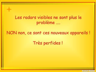 Le document met en garde contre de nouveaux radars cachés qui peuvent flasher plusieurs véhicules simultanément, rendant difficile l'évasion des amendes de vitesse. Ces appareils sont conçus pour sembler inoffensifs, comme de simples poteaux décoratifs, tout en surveillant la vitesse dans les agglomérations et sur autoroutes. Il souligne que même un léger dépassement de vitesse peut entraîner des contraventions coûteuses.