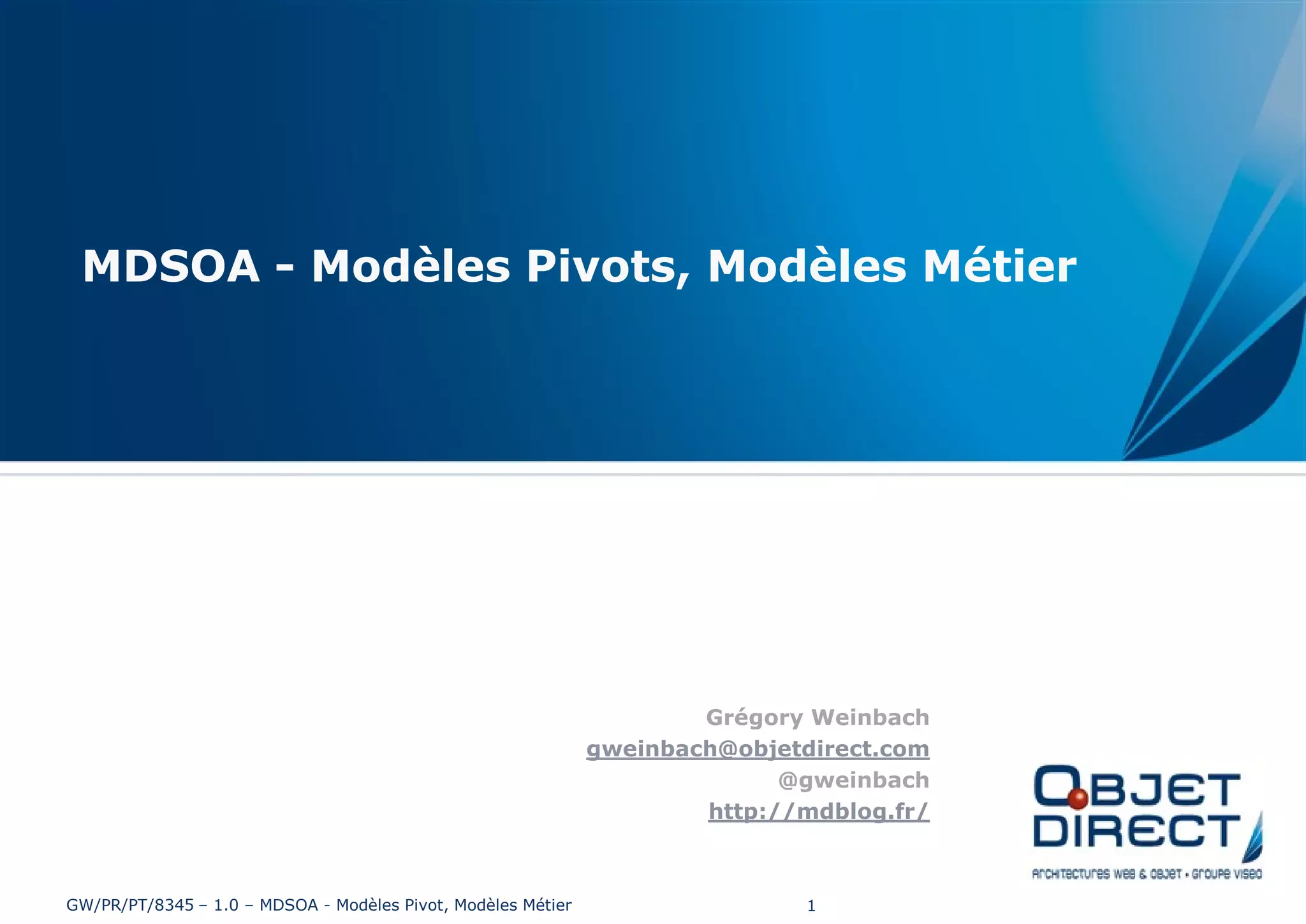 Le document présente les modèles pivots et métiers utilisés par le groupe Viseo, détaillant leur approche en matière de conseil IT, d'intégration des processus et d'optimisation des performances. Il souligne l'importance de l'urbanisation des systèmes d'information pour soutenir la création de valeur et décrit la modularisation des services. Enfin, il mentionne les diverses implantations internationales de Viseo pour accompagner les clients dans leurs projets globaux.