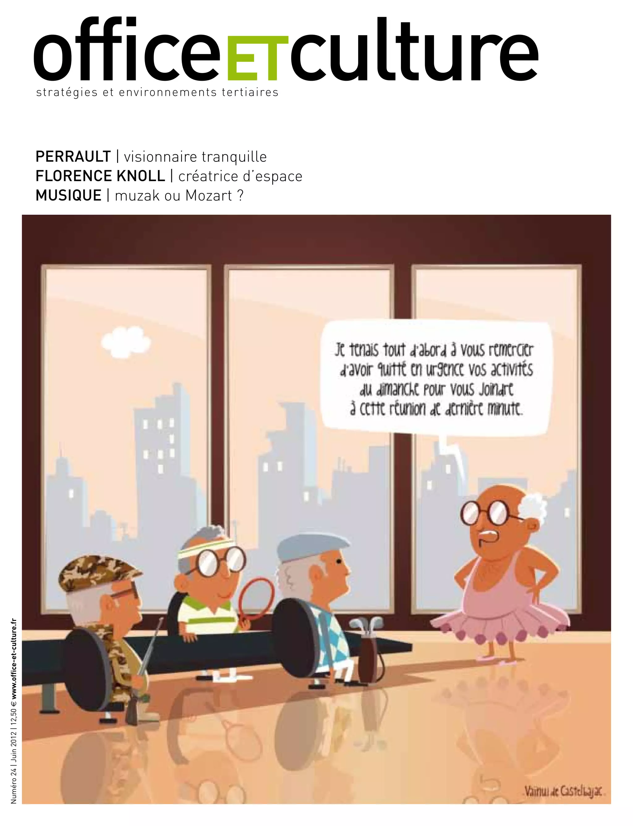 Le document explore les stratégies et environnements tertiaires en lien avec la vision de Florence Knoll en matière de design d'espace. Il évoque également la relation entre musique d'ambiance, tel que le muzak, et l'impact sur l'expérience des utilisateurs. Ce numéro de juin 2012 souligne l'importance de l'aménagement des espaces de travail pour favoriser la créativité et le bien-être.