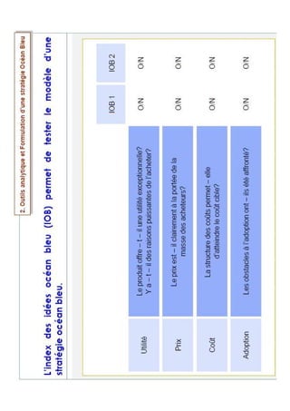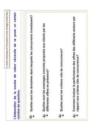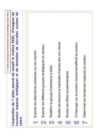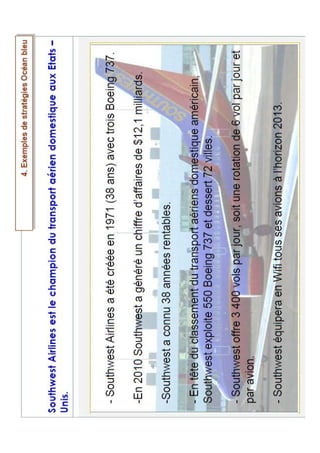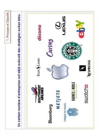 Le document présente une formation sur la stratégie océan bleu destinée aux PME au Niger, organisée le 10 octobre 2014. Il couvre les principes, les objectifs, ainsi que des outils analytiques pour formuler une stratégie océan bleu, illustrée par un exemple de Southwest Airlines. Ce contenu propose également un cas pratique pour les participants.