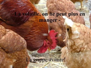 Le document met en évidence les dangers associés à divers aliments, notamment la viande, les œufs, le porc et les poissons, en raison de maladies et de contaminants. Il utilise un ton humoristique pour souligner l'angoisse face à la sécurité alimentaire. Enfin, il inclut une blague sur le partage d'un message pour la perte de poids, mêlant sérieux et légèreté.