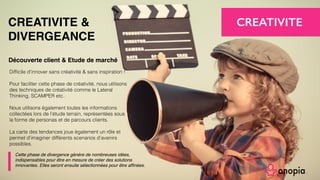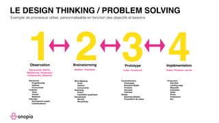 Onopia aide les entreprises à se différencier et à améliorer leur rentabilité en innovant dans les produits, services et modèles économiques, grâce à une approche collaborative et au design thinking. L'équipe, composée d'experts en divers domaines, a travaillé avec plus de 1400 cadres et dirigeants de tous secteurs, offrant conseils, accompagnement et formations. Les méthodes proposées incluent des sprints de design, des ateliers de créativité et des études de marché pour répondre aux besoins spécifiques des clients.