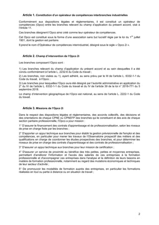 Le document constitue l'accord du 19 décembre 2018 pour établir un opérateur de compétences interindustriel, 'opco 2i', en réponse aux enjeux de formation professionnelle dans l'industrie. Il définit les missions de l'opco, telles que le financement des contrats d'apprentissage, l'appui technique aux branches et la promotion de la formation, tout en permettant une gouvernance paritaire. L'accord endorse également la collaboration entre branches pour sécuriser les parcours professionnels des salariés et anticiper les évolutions du marché de l'emploi.