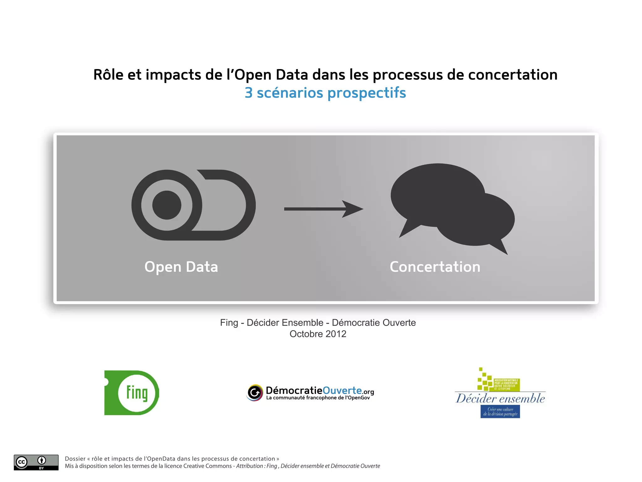 Le document explore le rôle et l'impact de l'open data dans les processus de concertation, à travers trois scénarios prospectifs, soulignant les promesses d'une plus grande transparence et participation citoyenne. Malgré l'émergence de collectifs et la récente dynamique d'ouverture des données publiques, son appropriation par les citoyens reste limitée en raison de divers freins. Le travail vise à identifier comment l'open data peut alimenter et faire évoluer les processus de concertation pour renforcer la démocratie.