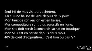 Le document présente une formation en optimisation du commerce électronique, abordant des sujets tels que le comportement des consommateurs en ligne, les stratégies de mix-marketing et les tactiques pour augmenter les ventes. Il souligne l'importance croissante de l'Asie en tant que leader du marché e-commerce et l'essor des achats mobiles, ainsi que les défis liés à l'abandon de panier. Les recommandations incluent l'analyse des parcours clients, la personnalisation de l'expérience et l'optimisation des taux de conversion.