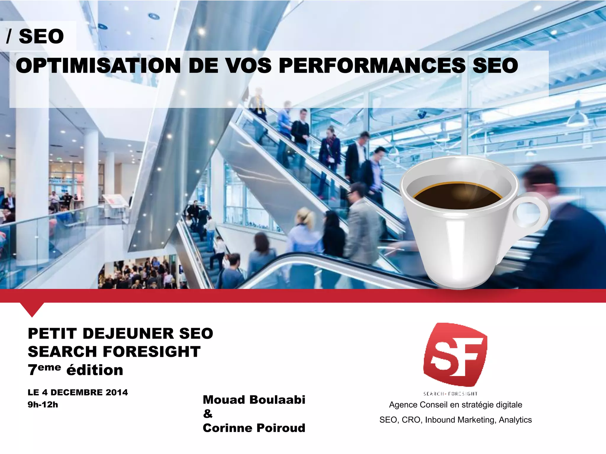 Le document présente un séminaire sur l'optimisation des performances SEO, soulignant l'importance du temps de chargement pour le référencement et l'expérience utilisateur. Il décrit des outils pour diagnostiquer les problèmes de performances, ainsi que des bonnes pratiques telles que l'utilisation de la compression, la mise en cache et l'optimisation des images. Des recommandations spécifiques sont fournies pour améliorer la performance des sites à travers des techniques de développement et d'infrastructure.