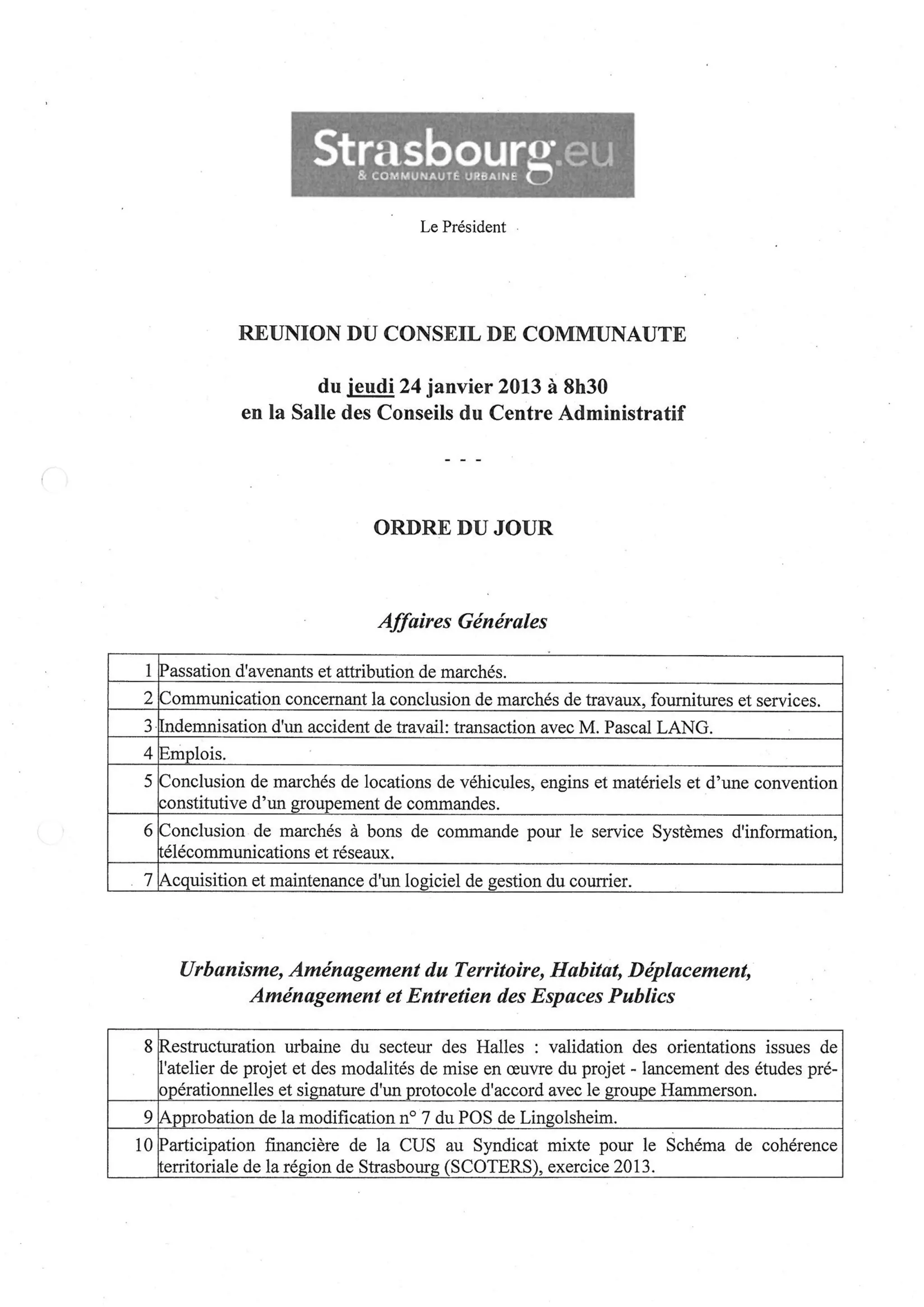 Ordre du jour conseil CUS