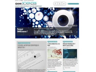 Ownisciences est un média social scientifique qui se concentre sur l'information et le débat concernant l'impact des sciences sur la société. Il rassemble une communauté diversifiée incluant blogueurs, chercheurs, journalistes et internautes, et encourage la production d'œuvres originales sous des licences Creative Commons. Le média promeut la pluralité d'opinion et souligne l'importance des découvertes et de la culture scientifique.