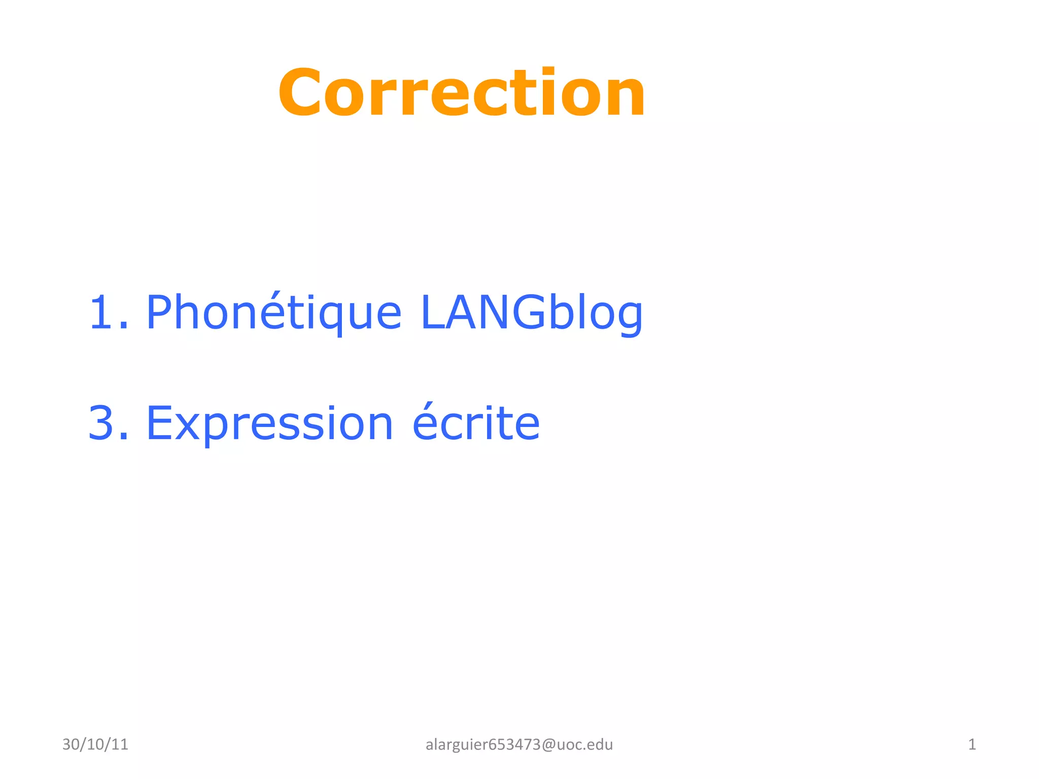 Le document aborde la correction phonétique et les sons du français, notamment [ã] et [c]. Il fournit des règles grammaticales et des recommandations pour améliorer l'expression écrite. Des erreurs courantes et des explications sur les déterminants indéfinis sont également mentionnées.