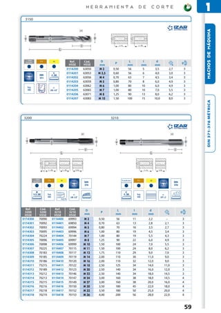 Le document présente une liste de machos de machine avec des spécifications techniques détaillées, y compris des références de code, des dimensions, et des tolérances. Il inclut également des informations sur le matériau utilisé, avec des notations pour différents types de machos classés par leurs caractéristiques. Ces données sont essentielles pour la sélection appropriée de machos en fonction des besoins industriels.