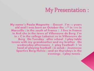 Paola, surnommée 'la bonne-mère', vit à Villeneuve de Berg. Elle mentionne également que cet endroit est Marseille.