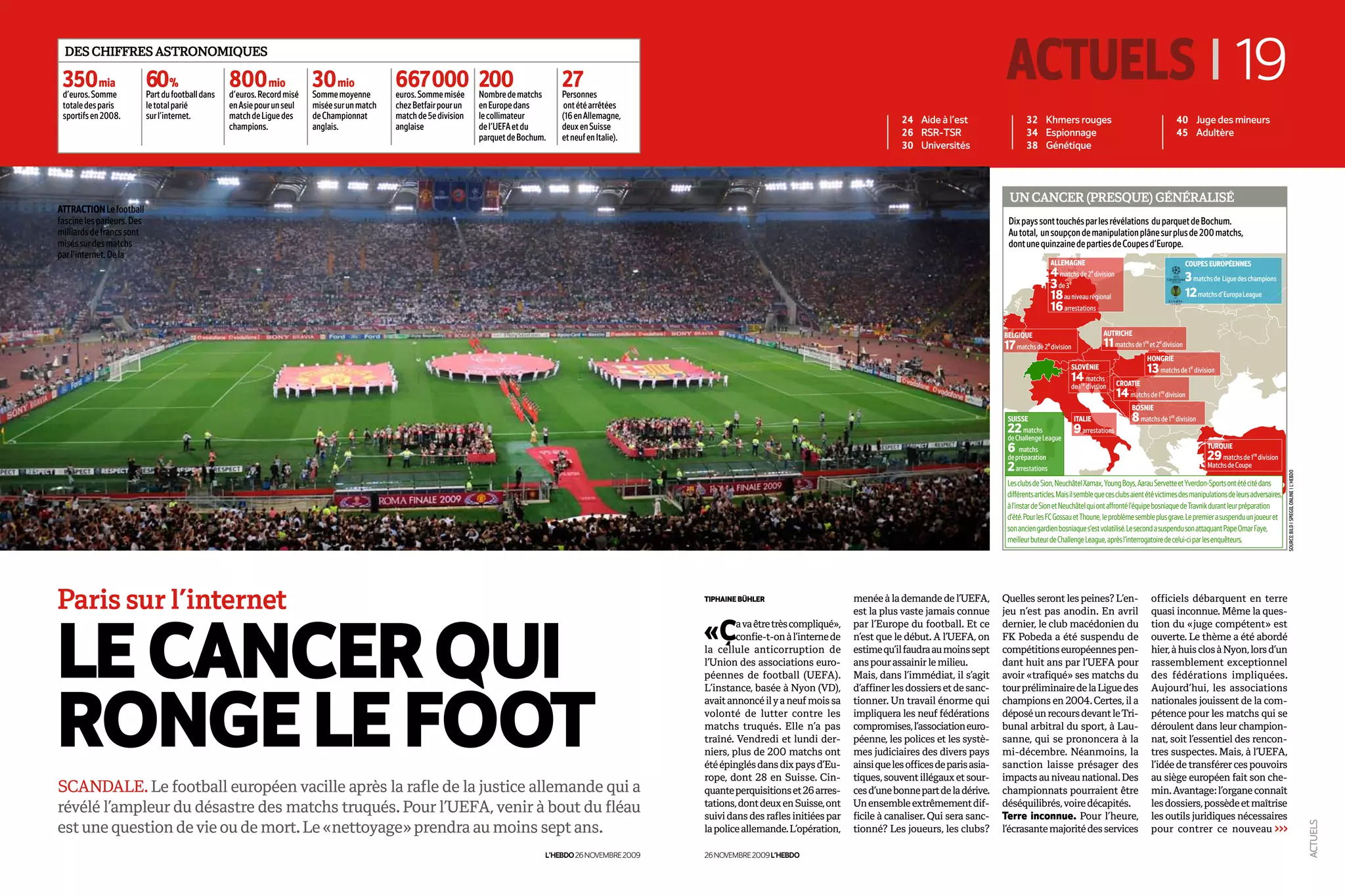 Environ 350 millions d'euros ont été misés sur des matchs de football suspectés de manipulation en Europe, avec des arrestations et des enquêtes révélant des problèmes de corruption touchant plus de 200 rencontres dans divers pays. Les clubs comme Sion et Neuchâtel ainsi que des joueurs ont été impliqués dans ce scandale de matchs truqués, qui soulève des inquiétudes quant à l'intégrité du sport. L'UEFA et les autorités judiciaires s'attaquent à ce fléau, avec un processus de nettoyage qui pourrait prendre plusieurs années.