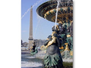 La Place de la Concorde est la plus grande place de Paris, avec un obélisque égyptien au centre. Notre-Dame de Paris, située sur l'île de la Cité, est mise en avant par Victor Hugo dans son roman. L'Arc de Triomphe, au centre de la place Charles de Gaulle, abrite le tombeau du soldat inconnu et rayonne vers 12 avenues.