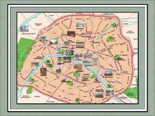 Le document explore l'histoire et les caractéristiques de plusieurs monuments emblématiques de Paris, dont la basilique du Sacré-Cœur, la tour Eiffel, et l'arc de triomphe. Il met en lumière leur construction, leur signification culturelle et leur rôle dans le paysage parisien, illustrant l'évolution artistique et historique de la ville. Des figures littéraires et artistiques importantes sont également mentionnées, notamment en relation avec divers cafés parisiens.