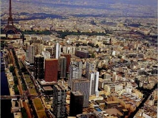 Le document décrit un survol de Paris, mettant en avant des monuments emblématiques comme la tour Eiffel, la basilique du Sacré-Cœur, et le Panthéon, tout en soulignant leurs histoires respectives. Il aborde également des aspects architecturaux modernes, comme le développement urbain de la rive gauche. Enfin, le texte évoque l'importance de Paris dans le contexte historique et culturel, illustrée par des lieux significatifs et des événements marquants.