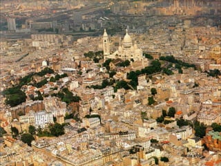 Le document présente une vue actuelle de Paris avec des réflexions sur son urbanisme, ses monuments emblématiques comme la tour Eiffel et la basilique du Sacré-Cœur, ainsi que des éléments historiques liés à la Révolution française et au développement architectural de la ville. Il souligne également la transformation de certains bâtiments, en particulier le Panthéon et les Invalides, qui témoignent de l'histoire et de la culture française. La maison de la radio est mentionnée comme un symbole de l'architecture moderne à Paris.