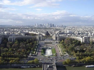 Le document présente une liste de monuments et de lieux emblématiques de Paris, tels que le Louvre, l'Opéra Garnier, et la Tour Eiffel. Il mentionne également divers musées, places, et jardins célèbres dans la ville. En outre, il inclut des références à des images et à une musique associée à Paris.