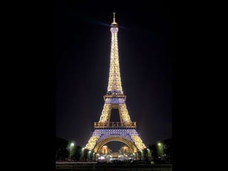 Le document décrit les lieux emblématiques de Paris illuminés la nuit, notamment les Champs-Élysées, le Louvre, et la Tour Eiffel. Il évoque également la beauté nocturne des monuments comme l'Opéra Garnier et Notre-Dame. La ville est présentée comme un tableau enchanteur, où chaque site historique brille sous les lumières nocturnes.