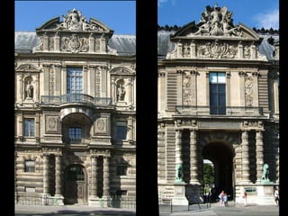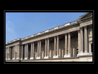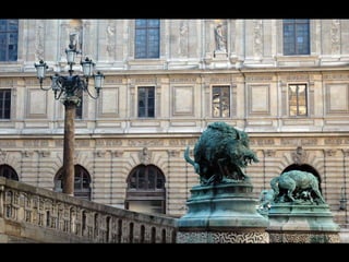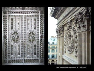 Le Louvre, ancien palais des rois de France, est devenu le plus grand musée de Paris depuis deux siècles. Le document évoque l'importance historique des symboles royaux, tels que la lettre 'r' de République et la lettre 'h' couronnée, qui ont été rétablis sous le règne de Louis XVIII. Cela illustre la transition entre la monarchie et la République dans l'histoire française.