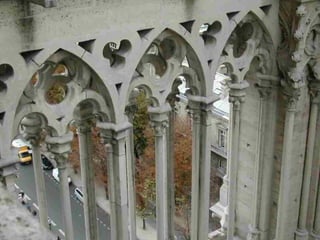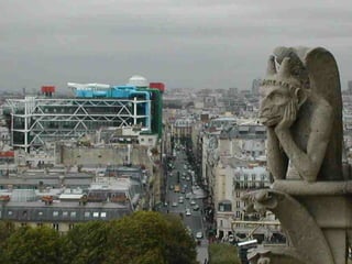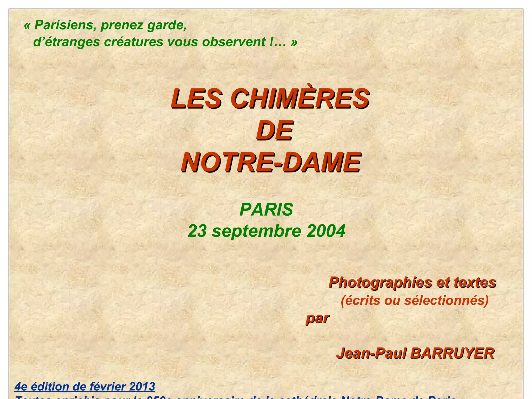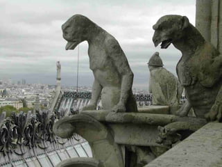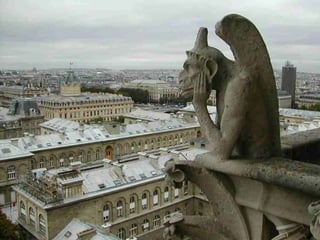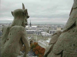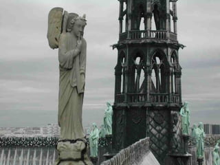 Le document présente une exploration photographique et textuelle de la cathédrale Notre-Dame de Paris, mettant en lumière ses caractéristiques architecturales, son histoire ainsi que sa signification culturelle et spirituelle. L'auteur partage ses impressions de différentes visites à la cathédrale, insistant sur la beauté des gargouilles, des chimères et des vitraux, tout en soulignant son importance au cœur de l'histoire française. En parallèle, il évoque la restauration menée par Eugène Viollet-le-Duc et l'impact littéraire du roman de Victor Hugo sur la perception de ce monument emblématique.