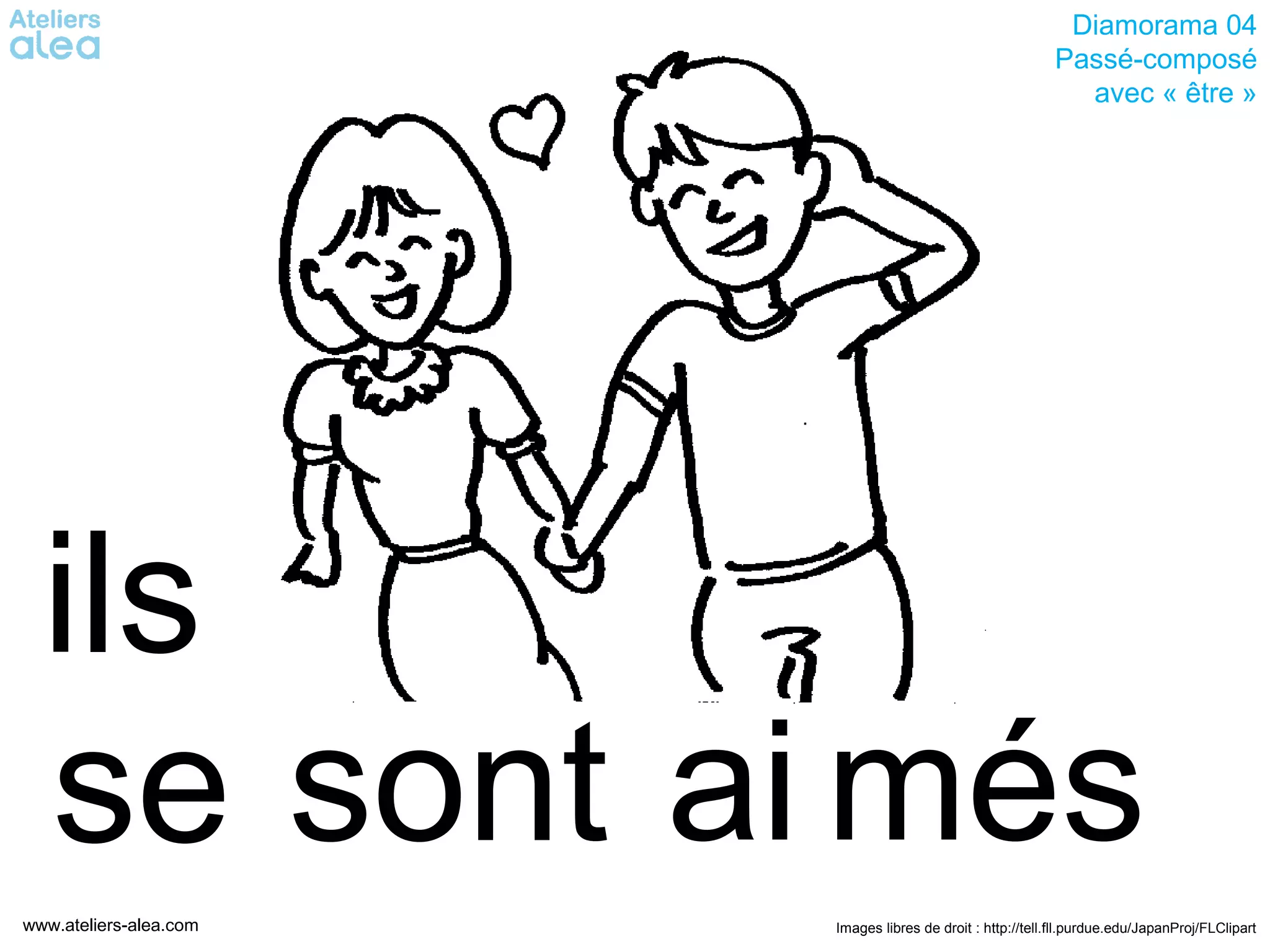 Le document présente diverses phrases utilisant le passé composé avec le verbe « être ». Chaque phrase illustre un exemple de conjugaison ou d'utilisation de ce temps verbal en français, souvent accompagné d'images libres de droit. Il sert de support éducatif pour l'apprentissage de la grammaire française.