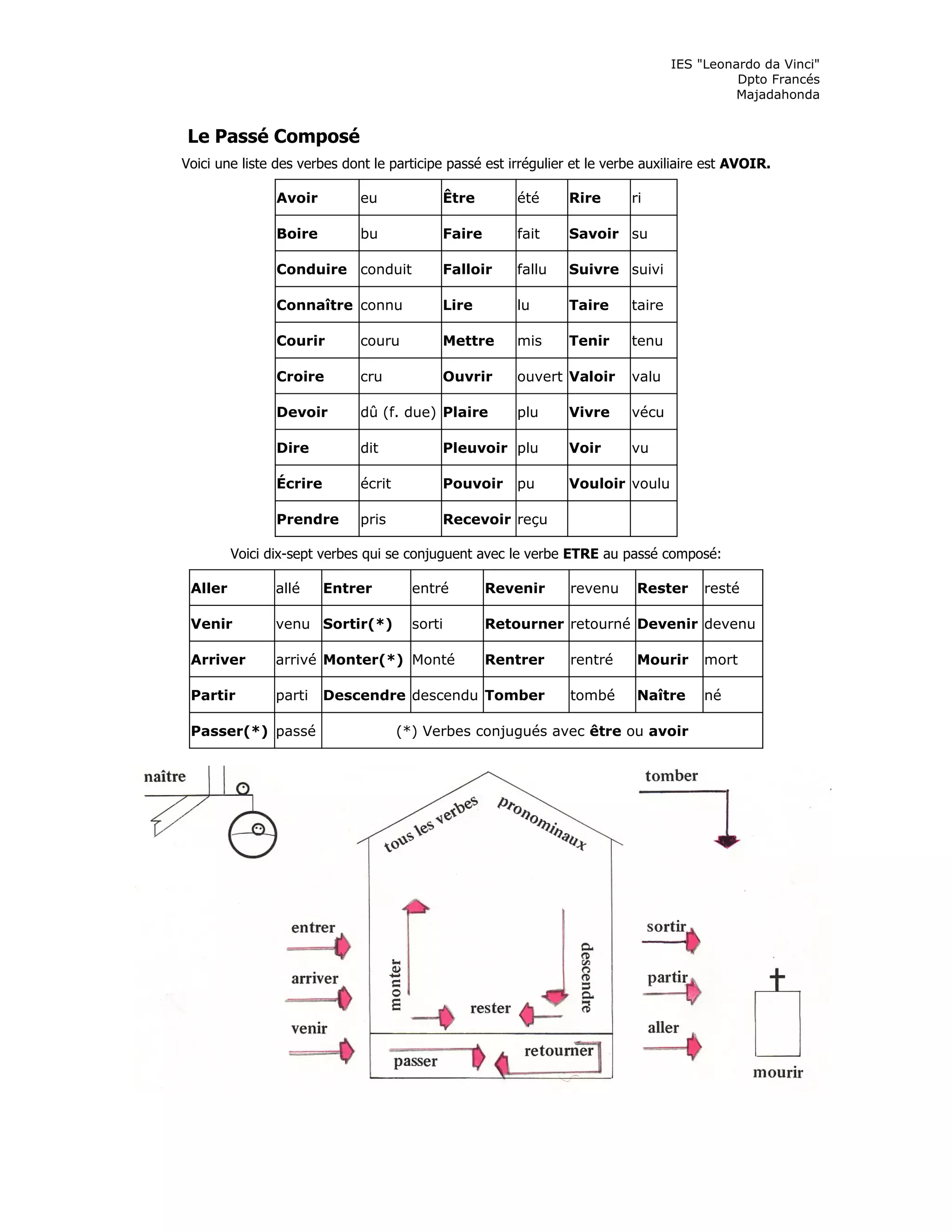 Le document présente des exercices sur le passé composé en français, en se concentrant sur les verbes conjugués avec 'avoir' et 'être'. Il inclut des listes de verbes avec des participes passés irréguliers, des propositions de mise en pratique, et des consignes pour raconter des événements passés. Enfin, il demande aux élèves de mettre diverses phrases au passé composé.