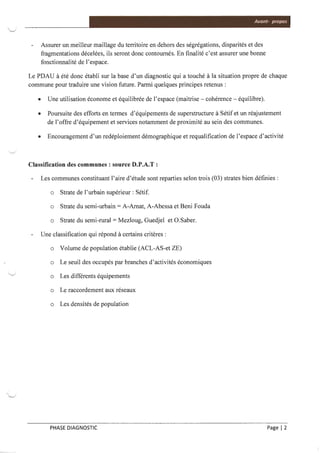 Cette étude examine les perspectives de développement urbain d'une communauté de 445.722 habitants dans la wilaya de Sétif, visant à créer un espace de développement équilibré pour réduire les disparités socio-économiques. Elle propose une réorganisation spatiale pour relocaliser certaines activités et valoriser les communes périphériques tout en respectant les normes d'urbanisme. Le document souligne la nécessité d'un diagnostic rigoureux pour identifier les faiblesses actuelles et établir un développement durable sur le long terme.