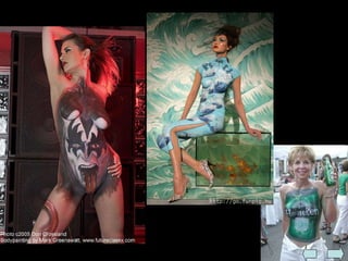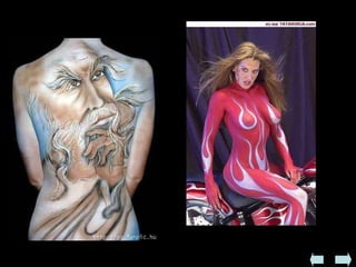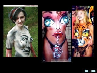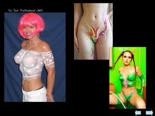 Le document parle de la peinture sur corps et incite à partager un email avec des amis. Il sous-entend que cela n'augmente pas les chances de succès, mais que c'est une action agréable à réaliser. La tonalité est informelle et engageante.