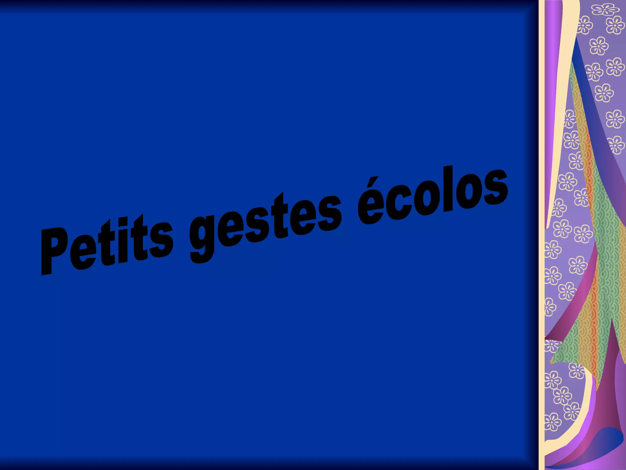 Le document présente plusieurs conseils pour adopter un mode de vie écoresponsable, comme débrancher les appareils après usage et trier les déchets. Il encourage à privilégier les produits naturels et saisonniers, à réduire la consommation d'eau et à utiliser les transports en commun. Enfin, il exhorte à replanter, à réutiliser des sacs et à penser à des pratiques écologiques au quotidien.
