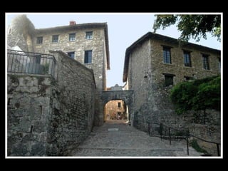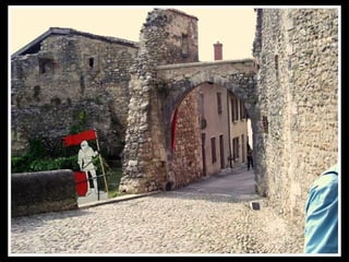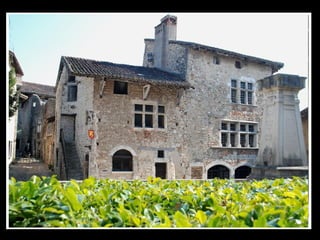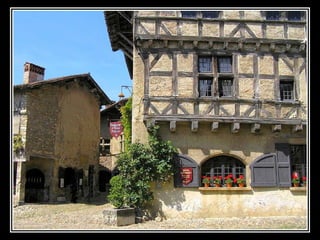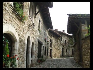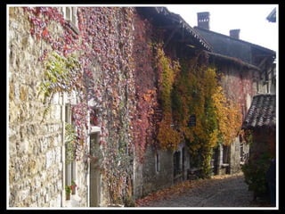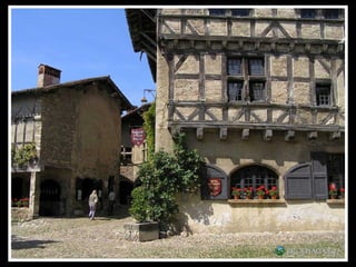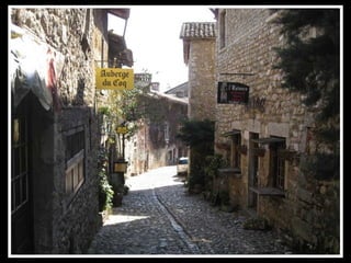 Pérouges est une cité médiévale située dans le département de l'Ain, connue pour son architecture du XVe et XVIe siècles et ses remparts restaurés. Classée parmi les plus beaux villages de France, elle est un site touristique majeur, ayant été sauvée de la démolition au début du 20ème siècle. Rattachée à la France par le traité de Lyon en 1601, elle a une histoire marquée par la rivalité entre la Savoie et le Dauphiné.