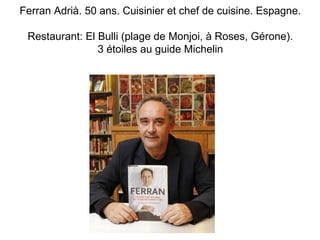 Le document présente des figures emblématiques de divers domaines tels que l'océanographie, la gastronomie, l'art, et la littérature, principalement originaires de France et d'autres pays. Il mentionne des personnalités comme Jacques-Yves Cousteau, Ferran Adrià, Claude Monet, et Oscar Wilde, au-delà de leurs contributions notables. Le texte compile également des informations sur leurs oeuvres et réalisations marquantes.