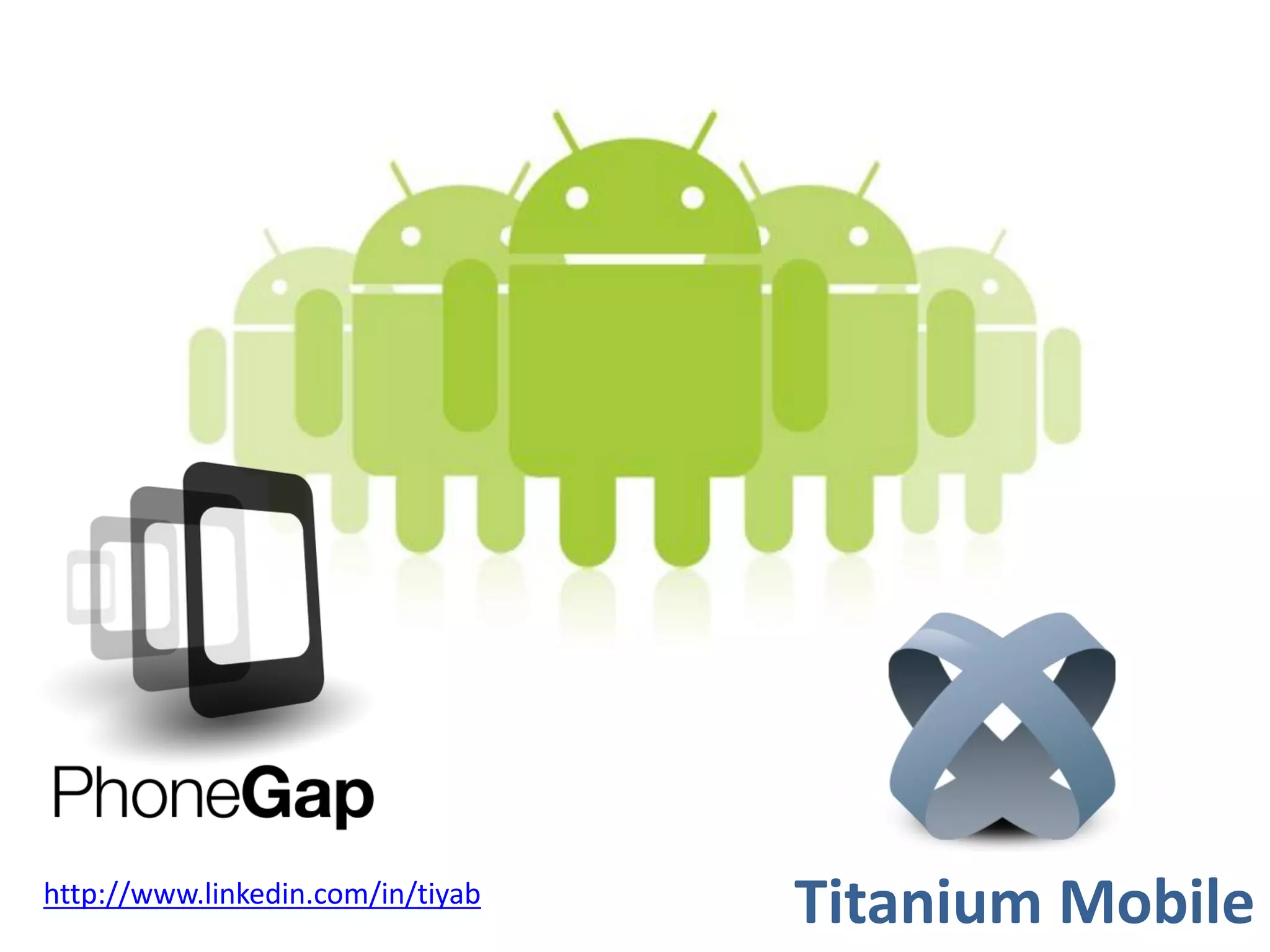Le document aborde les défis du développement d'applications mobiles face à la fragmentation des technologies et présente deux approches possibles : créer une application distincte pour chaque plateforme ou développer un site web compatible. Il compare les solutions multiplateformes PhoneGap et Titanium Mobile, soulignant que Titanium offre une meilleure richesse fonctionnelle et une productivité supérieure, tandis que PhoneGap se distingue par son support multi-plateformes. En conclusion, Titanium est généralement préféré pour les applications ciblant iOS et Android en raison de ses meilleures fonctionnalités et expérience utilisateur.