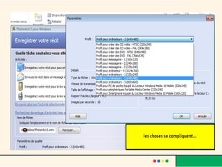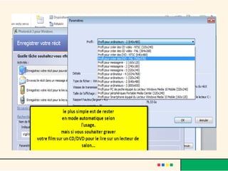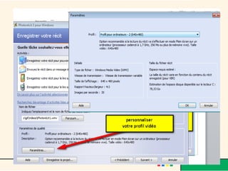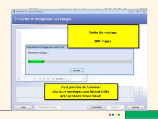 Le document présente un guide pour utiliser Microsoft Photorécit 3, un logiciel permettant de créer un diaporama vidéo à partir de photos numériques. Il décrit les étapes à suivre, depuis le téléchargement et l'installation du logiciel jusqu'à l'importation de photos, l'ajout d'effets, de musique, et la finalisation de la vidéo. Des conseils sur l'enregistrement et le format final de la vidéo sont également fournis, notamment pour respecter les droits d'auteur lors de l'ajout de musique.