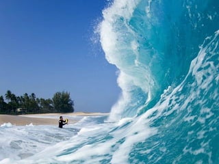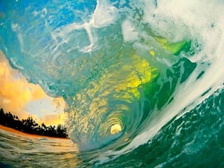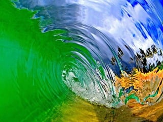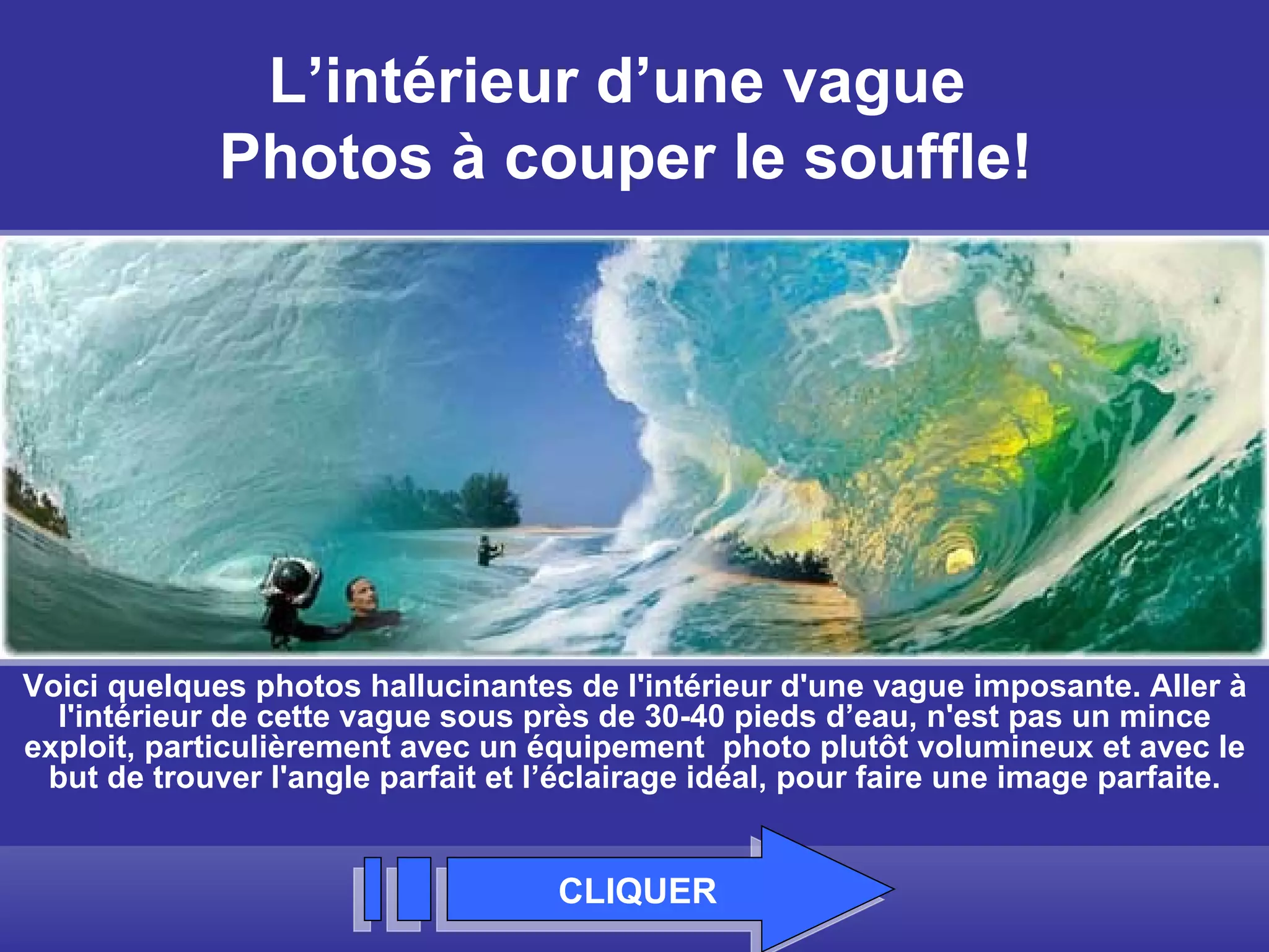 Ce document présente des photos impressionnantes de l'intérieur de vagues, capturées par le photographe Clark Little. Il met en avant les défis de photographier ces phénomènes marins, tout en soulignant la beauté et les couleurs éclatantes que ces images révèlent. Les photos reflètent un monde kaléidoscopique à travers la clarté des vagues.