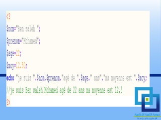 Le document présente une formation sur PHP et MySQL, en commençant par les prérequis, l'introduction et les outils de développement. Il aborde la syntaxe PHP et les interactions avec MySQL, incluant des exemples de requêtes SQL courantes et des applications pratiques, comme un dictionnaire en ligne. Le contenu cible des débutants souhaitant apprendre à créer des sites Web dynamiques et gérer des bases de données.