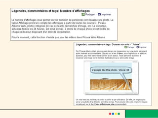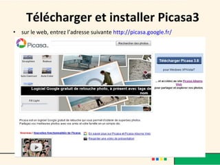 Picasa est un logiciel de gestion d'albums numériques permettant d'organiser, modifier et partager facilement des photos. Il offre des fonctionnalités telles que le diaporama, le montage photo, et la retouche d'images, tout en facilitant la consultation grâce à des mots-clés et des options d'impression. De plus, Picasa permet de télécharger des albums en ligne via Picasa Web Album, offrant ainsi un espace de stockage gratuit pour partager des photos de haute qualité.