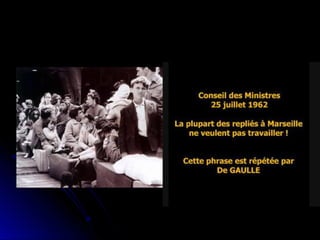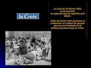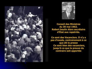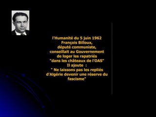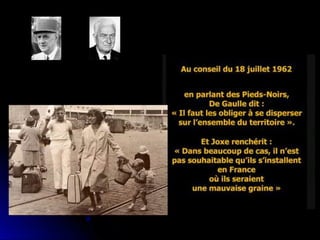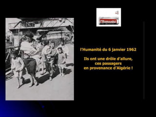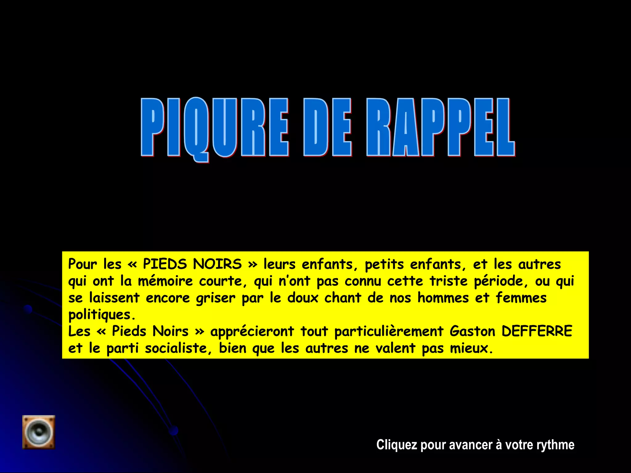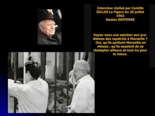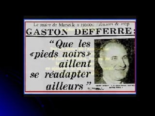 Le document évoque les souvenirs et les perceptions des 'pieds noirs' et de leurs descendants vis-à-vis de leur histoire, notamment à travers la figure de Gaston Defferre et du Parti Socialiste. Il souligne également une critique de la mémoire collective et de l'engagement politique. Enfin, il mentionne des personnalités connues en lien avec cette période historique.