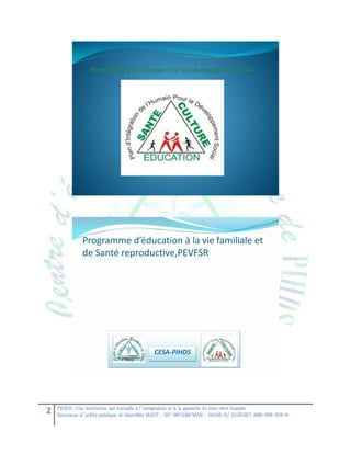 Le centre d'éducation sanitaire CESA-PIHDS vise à garantir le bien-être humain à travers des programmes de sensibilisation sur la planification familiale, la santé reproductive et la lutte contre les maladies sexuellement transmissibles (MST). Il organise des séminaires de formation et fournit des informations cruciales sur les MST pour encourager un comportement sexuel responsable et prévenir les grossesses non désirées. Les objectifs incluent l'éducation des jeunes sur la santé et la lutte contre la propagation des MST.