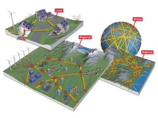 Le document traite de la gestion de l'énergie dans les réseaux électriques à haute et basse tension, en se concentrant sur l'importance d'un algorithme intelligent pour intégrer les énergies renouvelables et éviter les pics de demande. Il souligne les avantages d'un système simplifié, sûr et économique, tout en soutenant la décentralisation de la production d'énergie renouvelable. Enfin, il évoque des applications pratiques telles que la production d'énergie pour des petites centrales hydroélectriques et l'alimentation en énergie solaire.