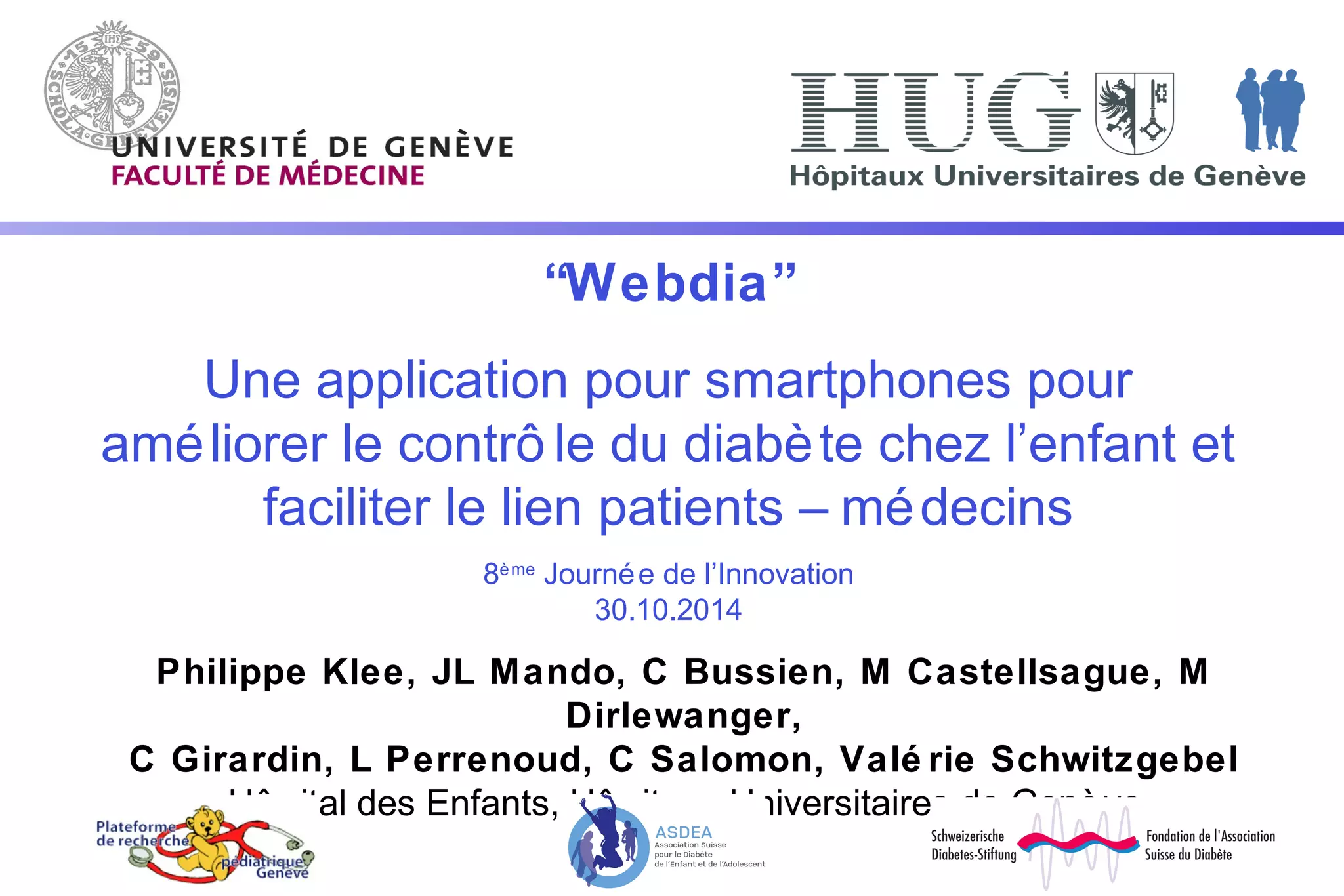 L'application 'webdia' facilite la gestion du diabète chez les enfants en améliorant le lien entre patients et médecins. Elle permet des calculs automatiques des glycémies et simplifie la communication des données pour éviter les problèmes liés aux rapports manuels. 'webdia' est conçue pour être facile à utiliser grâce à un effort multidisciplinaire impliquant différents professionnels de santé.