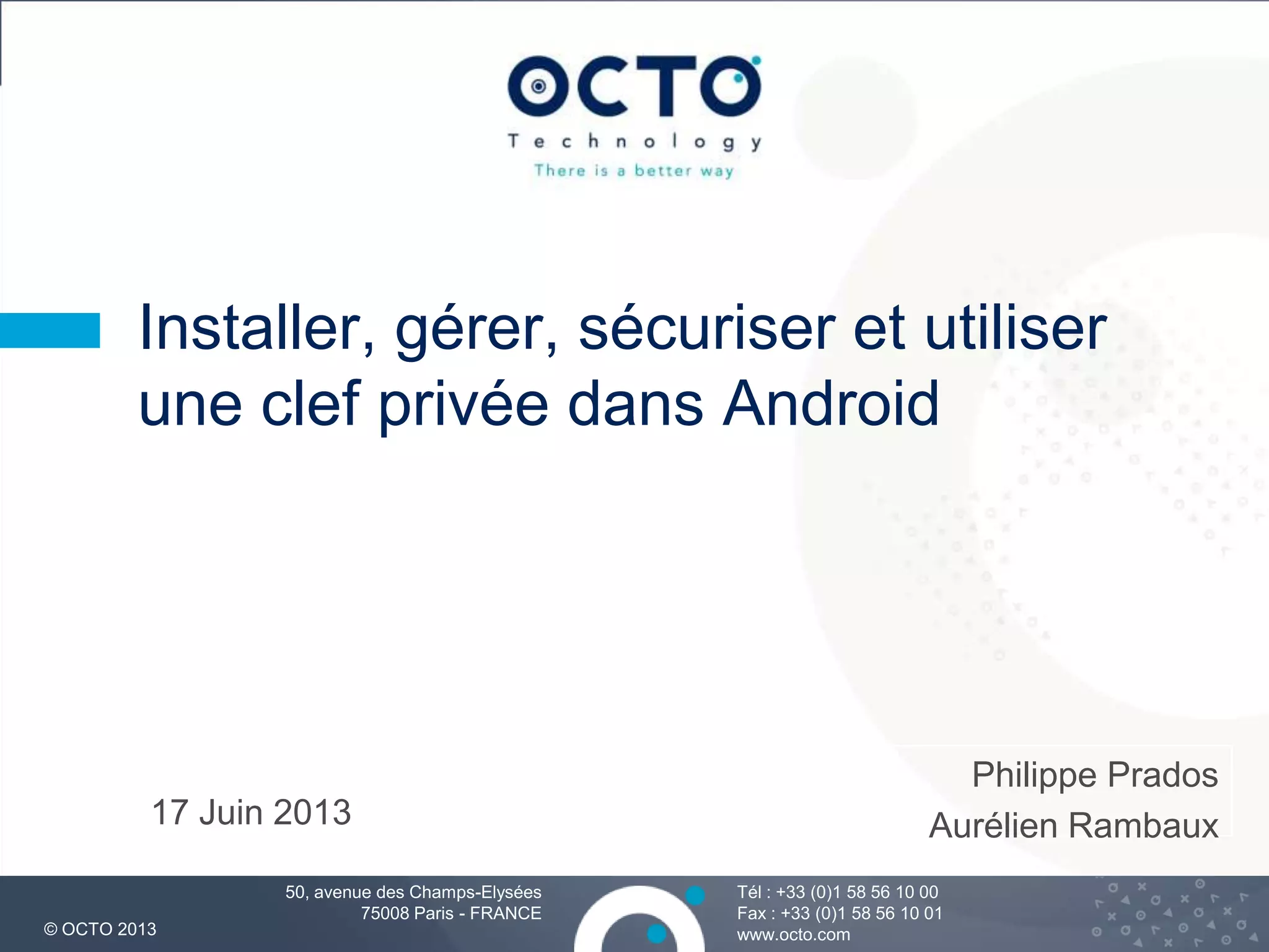 Le document traite de l'installation, de la gestion et de la sécurisation des clés privées sur Android via une infrastructure à clés publiques (PKI). Il décrit les méthodes de sauvegarde et de protection des certificats numériques, ainsi que l'utilisation de composants tels que le Secure Element et le Keystore. Enfin, le document propose un scénario possible d'enrôlement d'utilisateurs sur des terminaux tout en respectant des contraintes de sécurité.