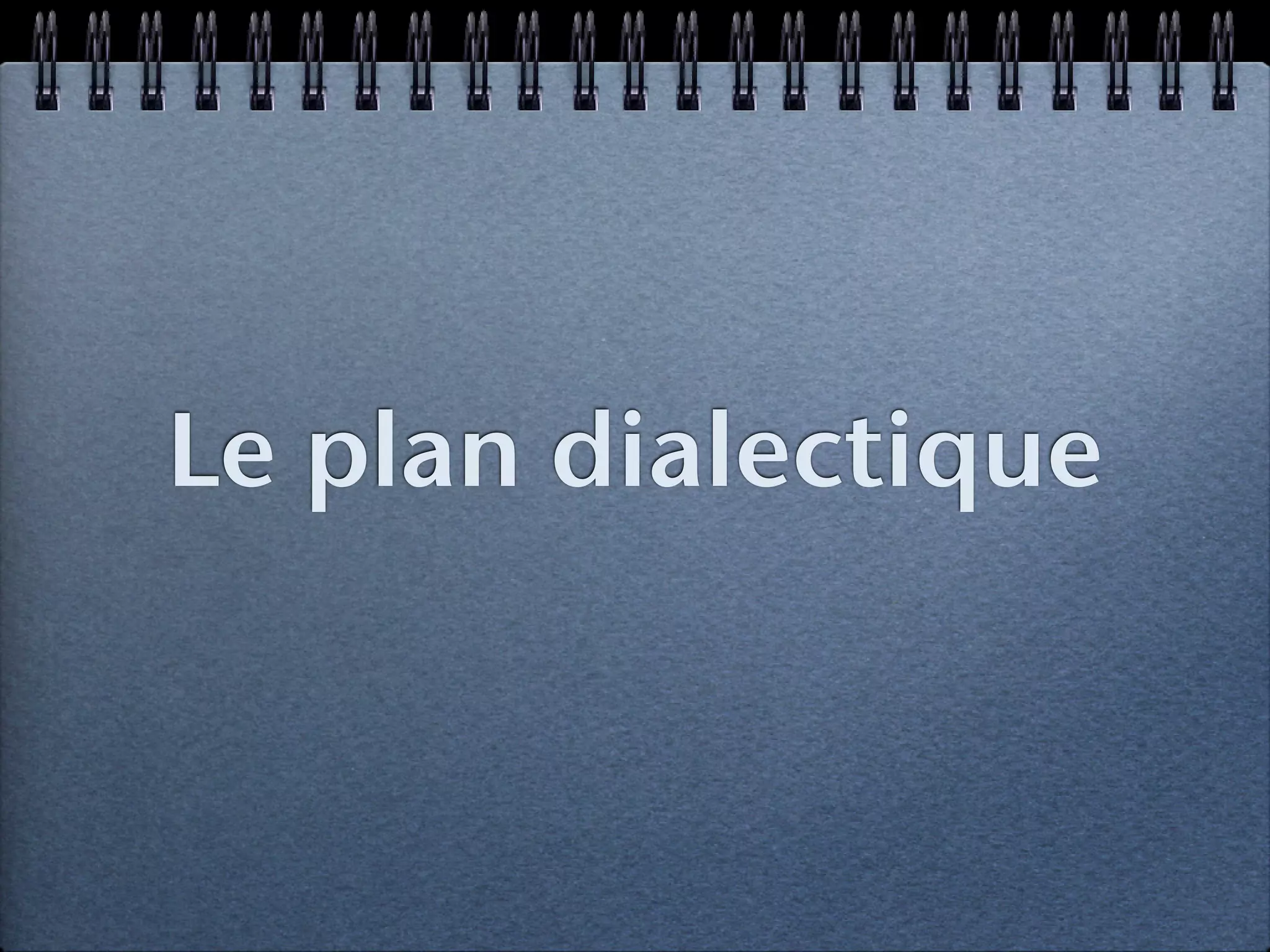 Le document présente une méthode de rédaction d'une dissertation en utilisant un plan dialectique basé sur la thèse, l'antithèse et la synthèse. Il décrit les étapes nécessaires à la préparation, à la structuration et à la finalisation d'un texte ainsi que la manière d'organiser les arguments autour des thèmes abordés. Des exemples sont fournis pour illustrer comment construire les différentes parties de la dissertation en fonction des opinions exprimées.