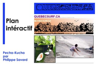 Le document présente un plan interactif de marketing pour promouvoir le surf au Québec, visant à attirer les surfeurs amateurs et amateurs potentiels. Les objectifs incluent l'augmentation de l'intérêt pour le surf et la création d'une communauté sur quebecsurf.ca, avec des cibles de trafic spécifiques sur les réseaux sociaux. Des stratégies de contenu et de diffusion en direct sont proposées pour engager les visiteurs et maintenir leur fidélité.