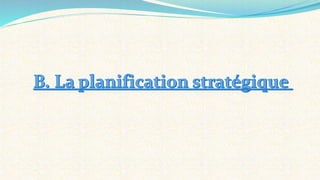 La planification d'entreprise formalise la prise de décision pour établir un état futur désiré, mais elle devient dépassée face à un environnement turbulent qui exige flexibilité. La planification stratégique, qui inclut l'élaboration de plusieurs scénarios et des programmes d'action, a émergé en réponse à ces défis. Toutefois, elle a également été critiquée pour sa centralisation et sa séparation entre la formulation et la mise en œuvre de la stratégie.