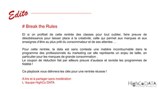 Le document aborde l'importance croissante de la data dans le marketing, notamment pour les marques de grande consommation qui doivent innover pour survivre. Il présente divers exemples de marques qui utilisent la créativité, comme Carrefour avec la réalité virtuelle et Unilever avec des acquisitions stratégiques, tout en soulignant l'importance d'une fidélisation modernisée à travers des dispositifs numériques. Enfin, il mentionne l'émergence de technologies comme le NFC pour interagir avec les consommateurs de manière plus engageante.
