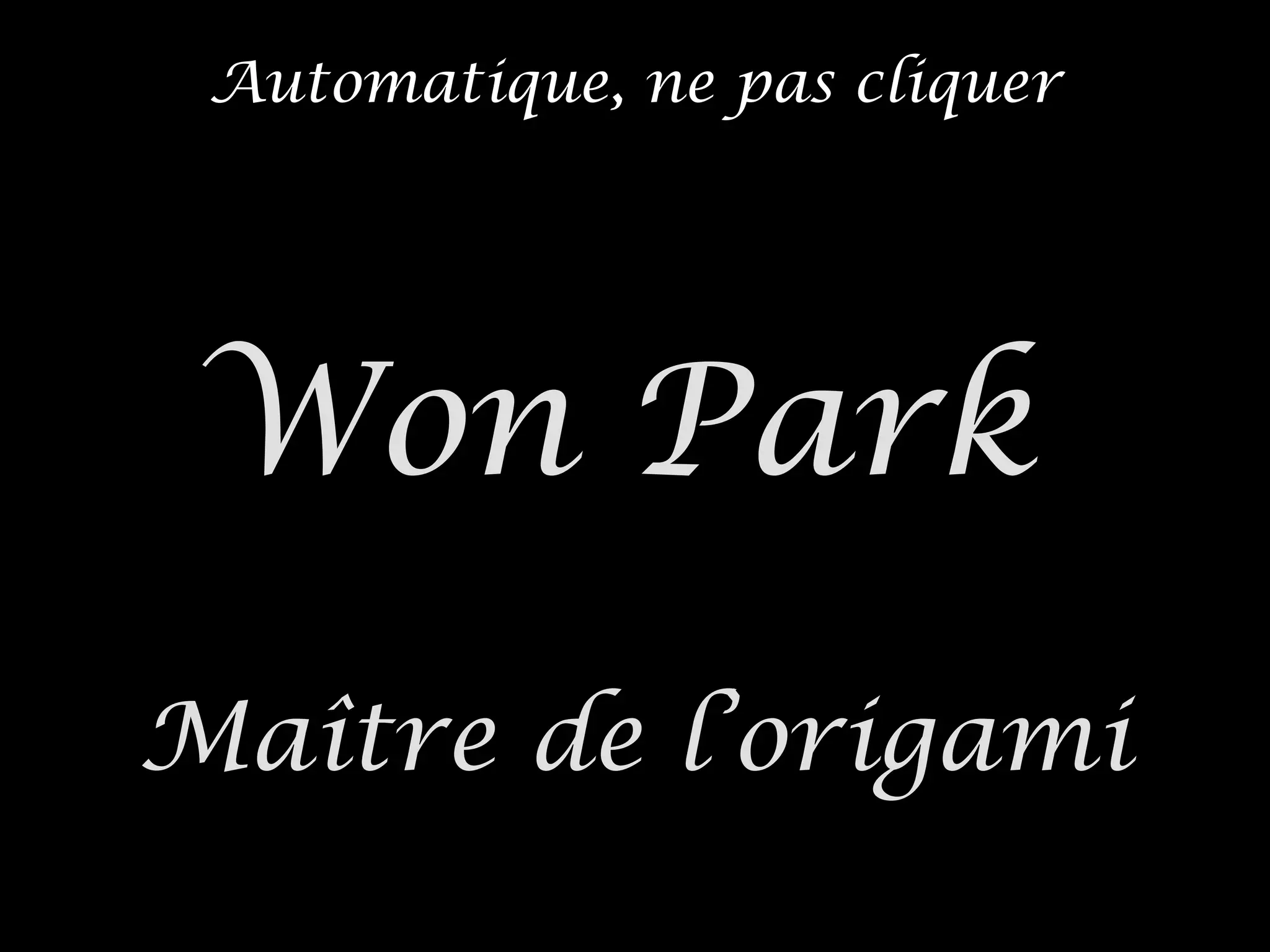 Won Park est un maître de l'origami qui crée des représentations d'objets uniquement à partir de billets de banque, utilisant des pliures géométriques sans colle ni coupe. Ses œuvres incluent divers animaux et objets, comme un papillon, un pingouin et un requin, démontrant son habileté et sa créativité. L'artiste vit dans des conditions précaires, ce qui ajoute une dimension poignante à son travail.